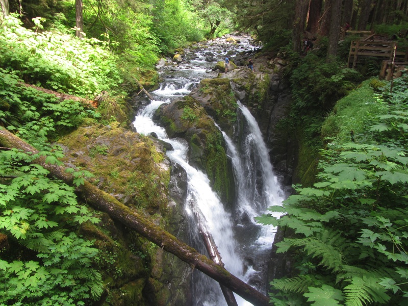 We headed down from the Sol Duc trailhead parking lot and passed by the falls. The Sol Duc falls were spectacular. There was a lot of water blasting through the rocks by the bridge, but we still had mountains to climb.