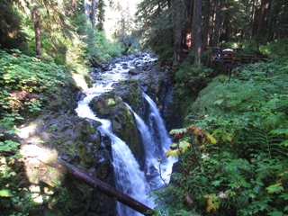A lot of people visit Sol Duc Falls. They walk from the parking lot to the falls, then they head back. This is definitely worth while, but there are all sorts of trails that run past the falls. One of our favorites is the trail up to Deer Lake which starts on the far side of the bridge over the falls. It's a rocky, lumpy trail, so it is hard going, and Deer Lake itself was a bit beyond us. We just weren't up to a 1600' climb.