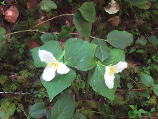 There was no snow on the trail, though we did see patches of snow in the woods. We did see lots of trilliums and lots of running water in the Sol Duc River, in Canyon Creek and seeping from the rocks and pooling on the trail. It's a beautiful but tiring trail. We returned to the car happy but exhausted. We encountered another twenty minute delay on the way back, but we considered the extra time on the road well worth it.