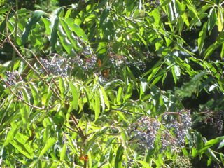 We forgot to mention that we saw some elderberries on the drive down from Hurricane Hill. There are two trees right near the road. We've been watching them. First there were the flowers. Now, the berries are ripe.