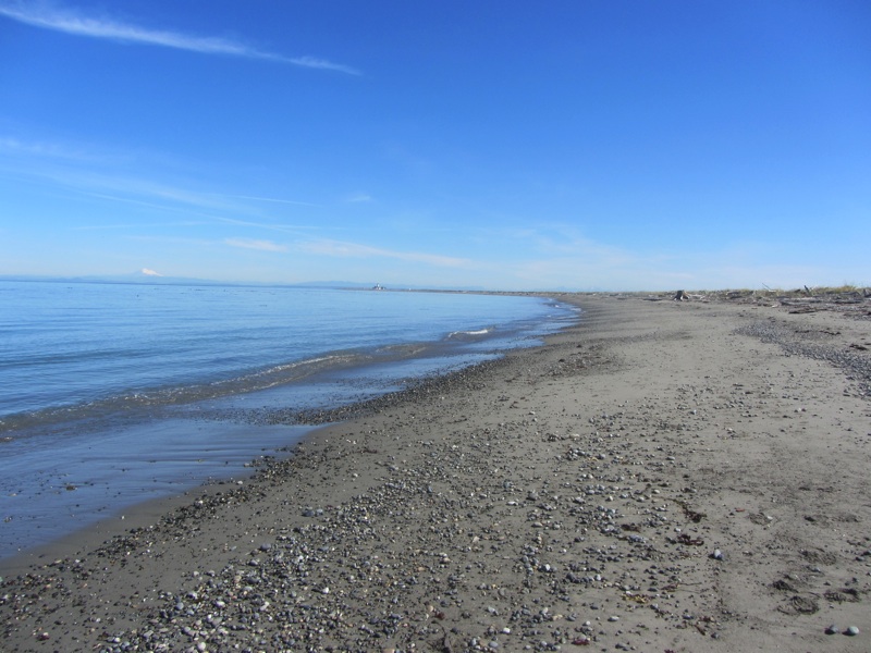 We've been watching the tides at Dungeness Spit. There is usually a period from mid-autumn into mid-winter when the tides are just too high during the day to hike all the way out to the lighthouse without pulling oneself across soft sand and clambering over driftwood. Worse, during the winter, the sand washes away leaving a rocky beach behind. We decided to take advantage of this prime hiking time for our hike.