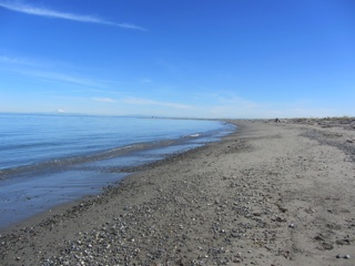 As you can see in the photos, we made it to the light. We did the full ten mile round trip in excellent time, well under four hours, thanks to a sandy beach and beautiful weather. We kept an eye on the sea and saw seals, seagulls, plovers, and sea ducks. The sky really was as blue as in the photos. Our next chance is not until February, and then only if the spit has some sand. Otherwise, it might not be until next summer.
