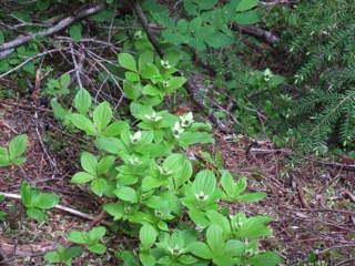 The Lake Angeles Trail is great for a workout. It's only a ten minute drive from town, so it's often our fallback for exercise when we don't have a lot of time. On our last trip we got to experience the season with trilliums both ready to open and already with pods having bloomed some time ago. The Pacific dogwood was like this too, with both slightly green early flowers as well as white ones in full bloom.