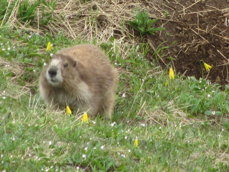 A marmot with glacier lilies