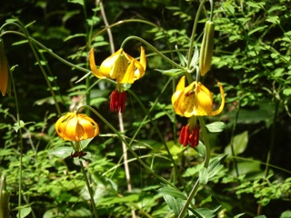 We also saw the fawn lilies. The first few are out with their delicate stalks and lovely hanging flowers. There were also a few trilliums, not many, but enough to convince us that spring has come.