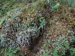 We were well rewarded. Our goal was skunk cabbage, and there was lots of skunk cabbage, especially past the ranger station as we approached the bridge. It grows in the drainage ditches and flooded areas of forest.