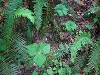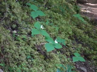 We didn't get very far on the Little River Trail, just to the "healing pools", a section of the trail where it is easy to get down to the river and wade. The cold water does wonders for one's feet. Along the way, the spring flowers had given way to the summer flowers. There were trilliums with their pods but no flowers, but the blood root and Pacific dogwood were in bloom.