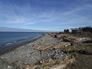 We went to the Dungeness Dike after the big storm. It had rained all night, and the wild winds had been blowing. The river was high, and the land was flooded. The new dike held.