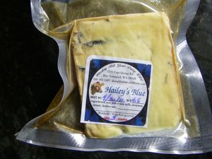 We recently dropped by Dungeness Valley Creamery to pick up some of their milk. While there we also bought some blue cheese made with their raw Jersey milk. It is Hailey's Blue, and it was delicious, with a good bite backed up by the creaminess of the milk. It's made by Whiskey Hill Goat Dairy in Port Townsend which is turning into a local hotbed of cheesemakers. They opened in 2008, and we haven't tried any of their goat cheeses yet, but now we're curious about their goat based feta and cheddar.