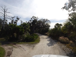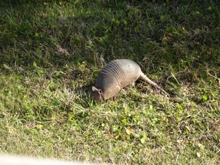 We made our way down to the South Dike and then headed into more wooded country. We heard a sound in the forest, an armadillo rummaging about. He or she - something only of interest only to another armadillo or a grammarian - was wary but offered us a good view. It was an easy walk south along the main road. Have we mentioned that the land in this part of Georgia is flat? It wasn't long before we returned to a familiar landmark, the vulture tree, not far from the lodge.