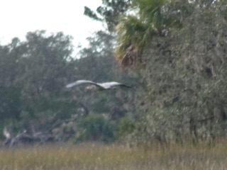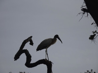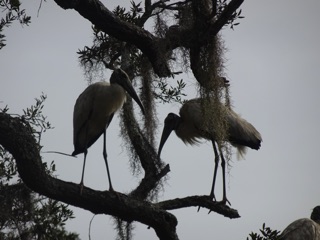 Our big surprise was, having reached the end of the Three Pines Trail, we found a tree full of wood storks. They're prehistoric looking birds. Everyone uses that adjective. We first thought they were ibises.