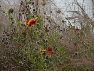 We were tired from our morning walk, but we just had to get out and do something, so we walked from the lodge to Three Pines and back. We had taken this walk just the day before, but that had been a sunny day. Today, there was mist shrouding everytbing.