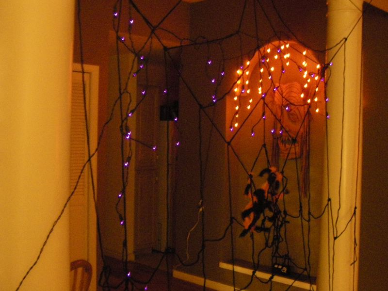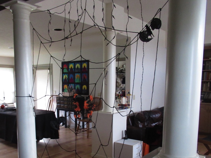 We had our usual Halloween passing out bales of candy to perhaps 200 tricker treaters. Our street must have a reputation as a soft touch. A reputation like that takes some living up to. That, and a lot of little candy bars. It also takes a giant spider in a giant web, our shaman transforming, and a bit of mad science. (Is there any other kind?)