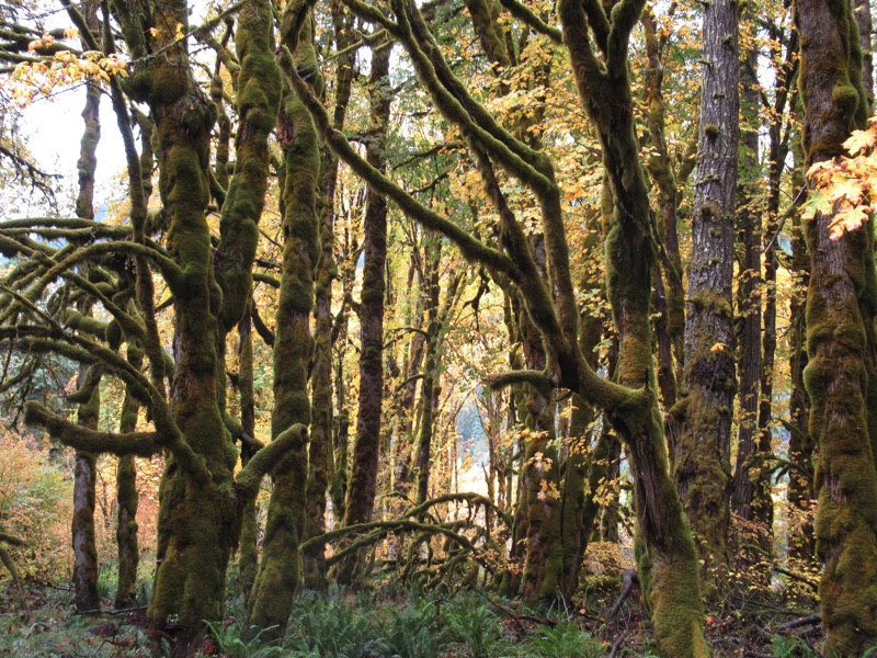 We drove out to Sol Duc Falls the other day. The resort was closed. The ranger's station was closed. Even sections of the road were closed with automated traffic signals regulating traffic. The parking lot was deserted but for a handful of cars. It was quiet and isolated and almost spooky. Maybe it was the Spanish moss. Maybe it was Halloween's ghost, but it was a touch spooky.