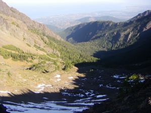 This has been a short season for the high country. Already, there is snow on Klahane Ridge. Granted, it was just a sprinkling and seems to have melted in all but the shadiest areas, but it was snow none the less. The recent rains and snow made climbing much easier. The trail was turning into soft sand as it does late in the season, but this time the footing was good.