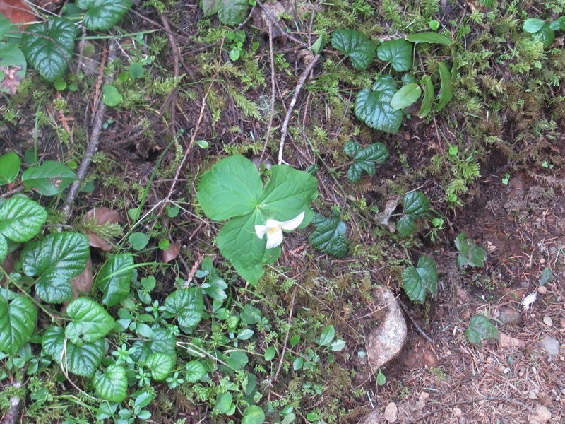 We've been getting back into shape, and that means climbing the Lake Angeles Trail. It's a great training trail in that it heads up steeply for 2400', but even shorter climbs offer a wonderful forest hike. To our surprise, the first trilliums were in bloom, mainly along the lower reaches of the trail. We didn't make it much past the foot bridge over the stream about 720' above the trail head, but we heard reports from other hikers that the lake was accessible. That gives us something to work towards, though it may be a while.