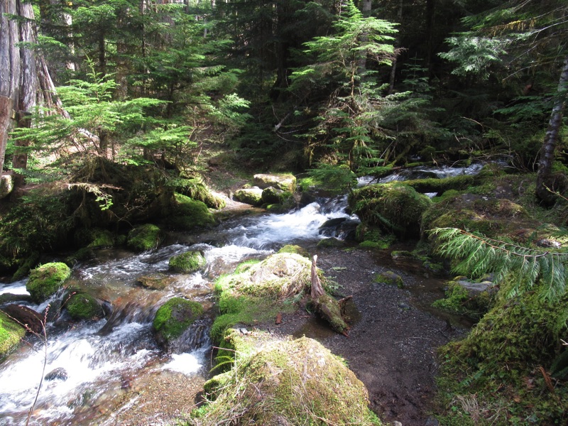We took a short hike up the Lake Angeles Trail. We made it to the stream, but we met a couple who had made it all the way up to the lake. They said there was about a foot of snow there. The start of the trail is green, but as one rises, there are more and more signs of winter.