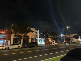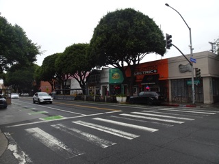 We had dinner in Beverly Hills, down near Rodeo Drive. It was raining, and the streets were quiet. We had an excellent dinner at a seafood restaurant, Crustacean. The sun set. After our meal, it was still raining lightly. The streets were still pretty quiet, but the shop lights took on a specially pleasant glow.