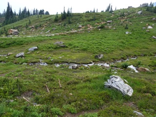 The country around Paradise at Mount Rainier is greener and wilder than the high country we are used to in the Olympic National Park. Those glaciers above melt and form rivers that seem to run everywhere, punctuated by dramatic waterfalls. There was less of a sense of exposure to wind and sun, but so much was familiar.