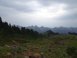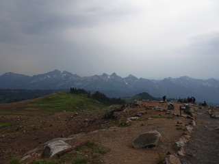 It was an amazingly beautiful day. The sky was blue. The air was clear. We could see Mount Rainier above us and mountains far in the distance. The trails were busy with mountaineers carrying gear, families with children and so many others like us just admiring the scenery.
