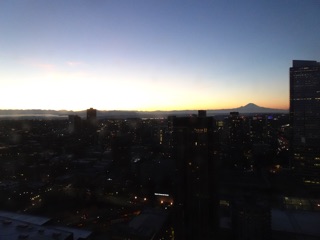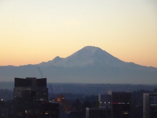 The next morning, we were up early. We had a great view of the morning sunrise and Mount Rainier.