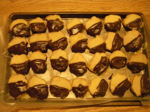 These are our favorite cookies. That's an almond pastry with a raspberry preserve filling. We missed them for Christmas, but there was no way we were getting through the winter without them. (The recipe)
