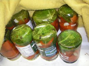 Store all the jars, upside down, wrapped in a heavy blanket. They'll stay hot for at least two days, cooking and ripening all the time.