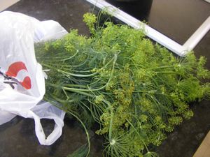 We had to run around to find the fresh dill with flowers. Albertson's was out, but Safeway had them.
