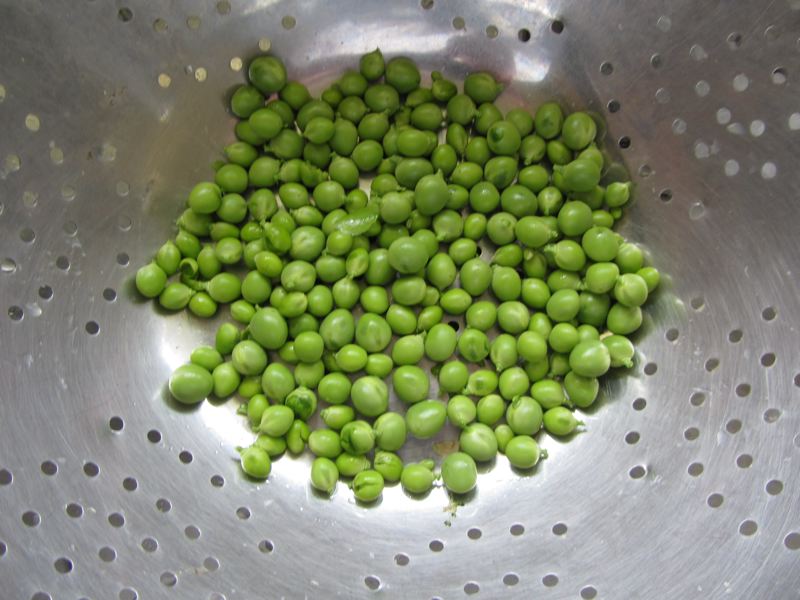 The Johnston Farm had the first garden peas of the season at the Port Angeles Farmers' Market this past weekend, and the Korean Garlic Lady had her first new potatoes, so we Kalebergs had one of our favorite spring dishes, and well before August at that. It's based on an Edna Lewis recipe and it's a simple dish to make.