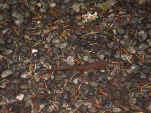 Olympic SalamanderWe were out on the Spruce Railroad Trail today, and we couldn't help noticing that the mud is back. That and the salamanders. You have to keep your eyes open, or you'll step on one of the unique species of the Olympic Peninsula. These little lizards are a sort of red gold, and as you can see in the photograph, they rather blend in to the background. The rain brings them out and it brings out the slugs, so this is a great time to explore the trails of Olympic National Park.