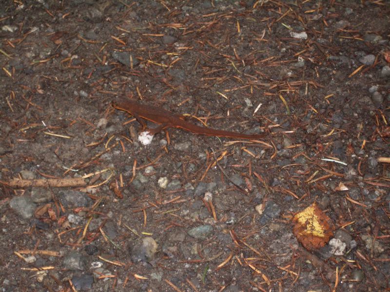 It pays to keep one's eyes on the ground, even on the Dungeness Dike Trail. While enjoying the fall foliage we found this little fellow, an Olympic torrent salamander.