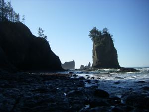 There were a lot of folks camping, including a den of pirates, possibly hiding out from the minions of the RIAA. We also saw a few surfers, black forms in their wet suits. They splashed their way out from shore, then rode the waves gracefully back to the shallows. Second Beach is not a tropical paradise like Waikiki. It's a more mysterious place with fog, cold water and an essential wildness, and all the more attractive for it.