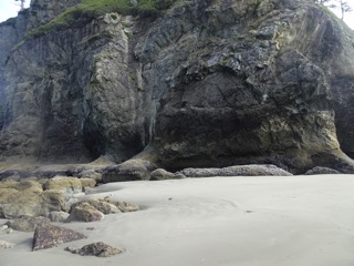 We made our way south along the broad beach to the sea stacks and sea caves at the base of the coastal bluffs. Again, starfish were plentiful. We explored for a bit. The tide was so low, we could have headed farther, but we know our limits. We had a peaceful walk back.