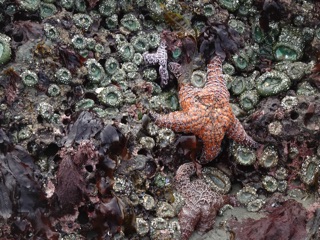 The other great change is that the starfish are back. There was a period not all that many years ago where they had vanished. Some starfish disease had wiped out most of them. Now they were everywhere, clinging to rocks in stark contrast.