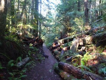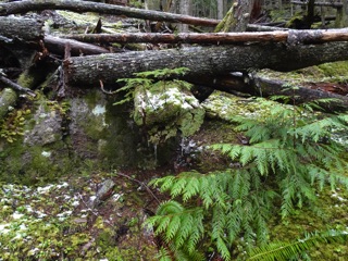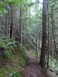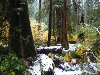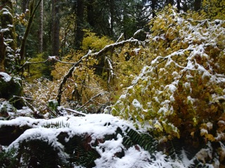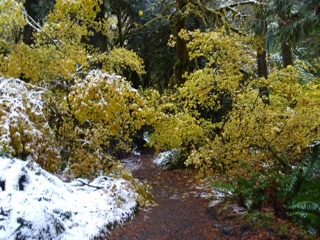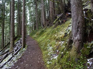 We hiked the Lake Angeles Trail a few times this winter. By late February, there was only a little snow on the lower reaches of the trail. That's as far as we went, though others we met on the trail had made it all the way up to the lake. It's one of the easier trails to get to from town, but with all the rain and cold weather, we haven't been getting up there lately.