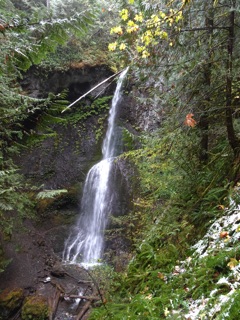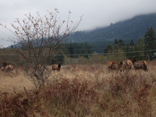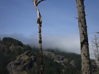 We were up at Hurricane Hill again to check for signs of winter. There were clouds in the mountains and the hills were shrouded with mist. The next post down is just pictures of the fall color and the gray, but here are some photos showing signs of winter.