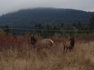 We often follow the Olympic Discovery Trail from the parking lot near Morse Creek. We head west towards Port Angeles. The trail, an old railroad right of way, passes through the Four Seasons subdivision and down to the strait. It is open all year and not very far from where live. It's also a great trail for tracking the seasons.