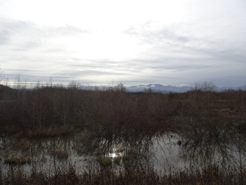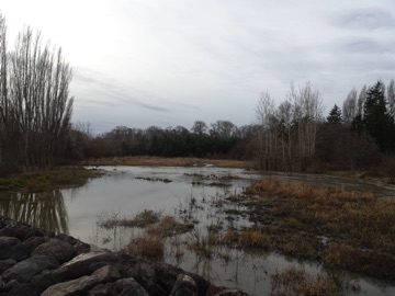 We went to the Dungeness Dike after the big storm. It had rained all night, and the wild winds had been blowing. The river was high, and the land was flooded. The new dike held.