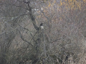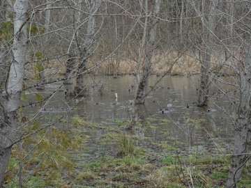 It's almost winter, so flowers were few and the trees were bare. The ponds were full of ducks, and we could hear frogs croaking somewhere. We had a great view of an osprey, a distant view of an eagle, a silhouette of a jay, a great blue heron and a rather odd mystery bird a bit too far to photograph properly.