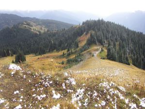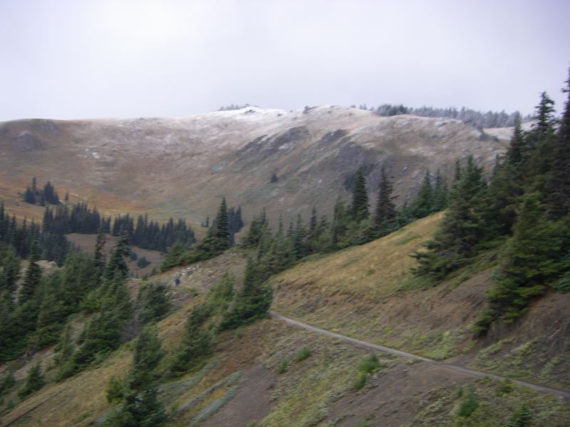 There was a dusting of snow in the hills the other night. When we woke up there was a fresh coat of snow on the mountains. We weren't sure if we could get up to Hurricane Hill, but we called 360 565 3131. They had the update from the previous afternoon. The webcam had been down since around 4:30 on Saturday. A little after nine we got the word. The road was open, so we set out for the high country.