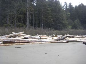 On the plus side, the big pile of driftwood seems to be shrinking. The clamber out to the beach was much easier than we had expected, and several of the really big logs seemed to have drifted back out to sea.