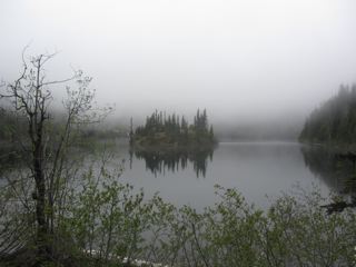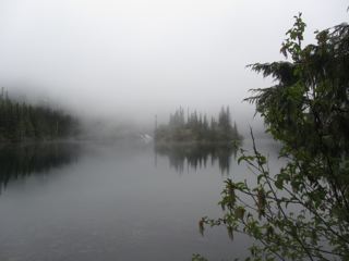 It was cloudy, so we couldn't see the walls of mountain surrounding the lake, but that made it all the more mysterious. We could see the little island and maybe some distant snow through the mist. It was a spectacular feeling, and all the trilliums in bloom only added to it. We may not make it back up to Lake Angeles for a while, but this climb made a great start to the season.