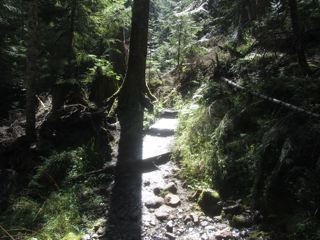 We've been having some changeable weather lately with rain and wet and then sunny and dry. The Lake Angeles Trail takes one through a variety of climes. Here's a photo of a gateway into the sun and mist of our local forest.