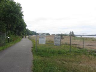 The area around the bridge is the Rayonier site, once a paper pulping mill, and now a toxic waste site. It's a bit industrial, but industrial softened by time as old metal rusts, old wood crumbles, and brush and plant life take back their own. Unlike the rest of the trail, chain link fences block off the waterfront for about a half a mile, but the water remains in view. The bridge itself is good looking and offers a nice view of the strait. It's not pristine wilderness by any stretch, but it's a definite improvement.