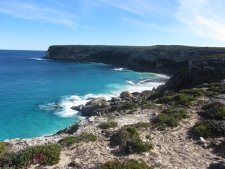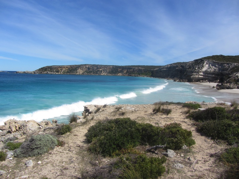 We made it to Kangaroo Island. The next thing south is the Antarctic. We're staying at an amazing hotel built into the cliff side. The chef is a genius. They have to truck in electricity, and we don't want to even imagine where they get the water for our rain showers.