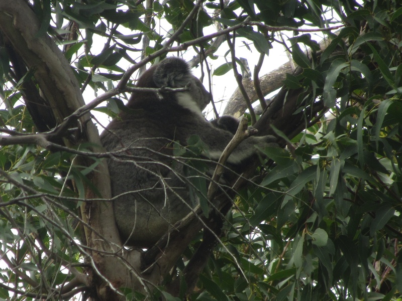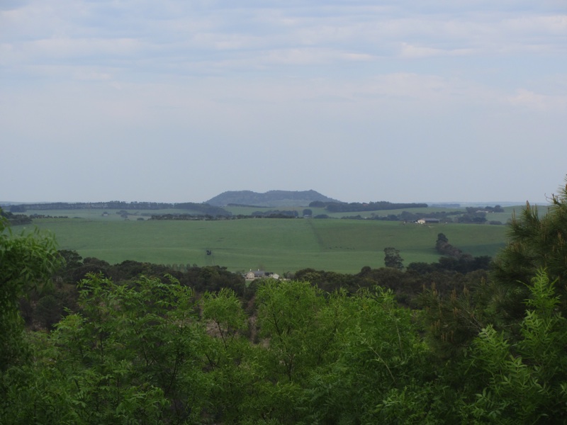 We continued along the road through flat country and noticed a mountain jutting out of the fields to the right. This was Mount RIchmond, an extinct volcano. We didn't know what to expect, and we were a bit tight on time, so we never did get to the overlook. Still, we spotted our first wild koala perched in a tree which was a real treat.