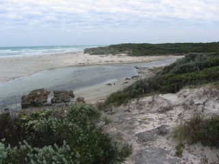 We followed the coastal road from Penola to Port Fairy and made a few stops along the way. The Limestone Coast is named for the underlying rock, so there were a number of interesting formations. We took a chalk road to the Piccaninnie Ponds right along the coast. This was mainly grass and scrub land, but we spotted a lizard or two and found a lovely, deserted beach.