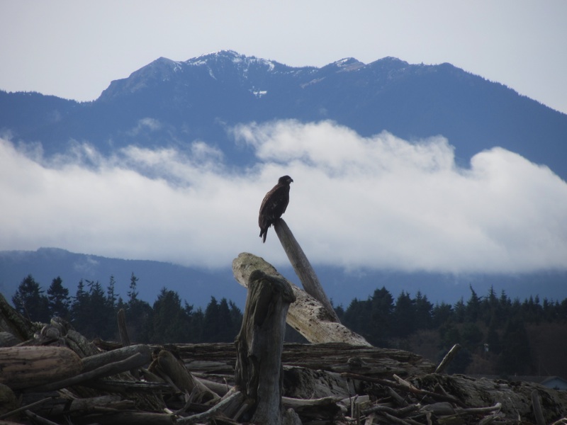That curiosity aside, the real high point of our hike was seeing a young eagle perched on a log with a crystalline view of the mountains in the background.