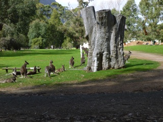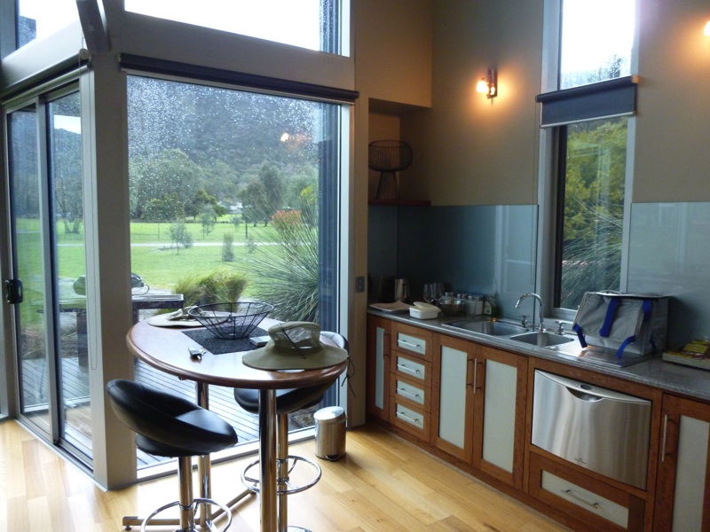We rented a lovely modern cottage with housekeeping facilities in Halls Gap, which is sort of the Port Angeles of the Northern Grampians, but much smaller. Here, surrounded by kangaroos, we settled in, weathered the storm, and made the most of the our limited kitchen facilities and the limited gourmet shopping in town.