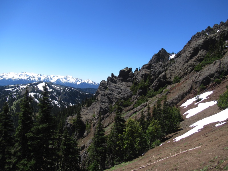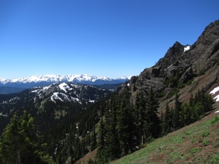 We tried climbing Klahane Ridge again. This time we got within a 150 foot climb to the ridge, but just couldn't face trudging through the mound of snow blocking the trail. We had made our way through a couple of snow barriers, but this last one was enough for us.